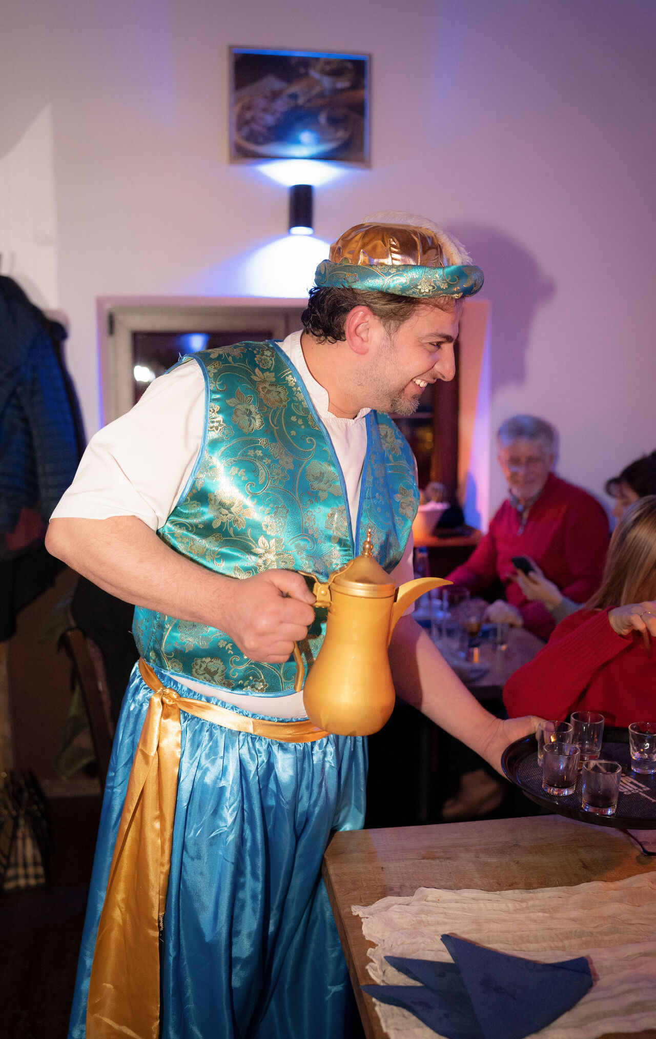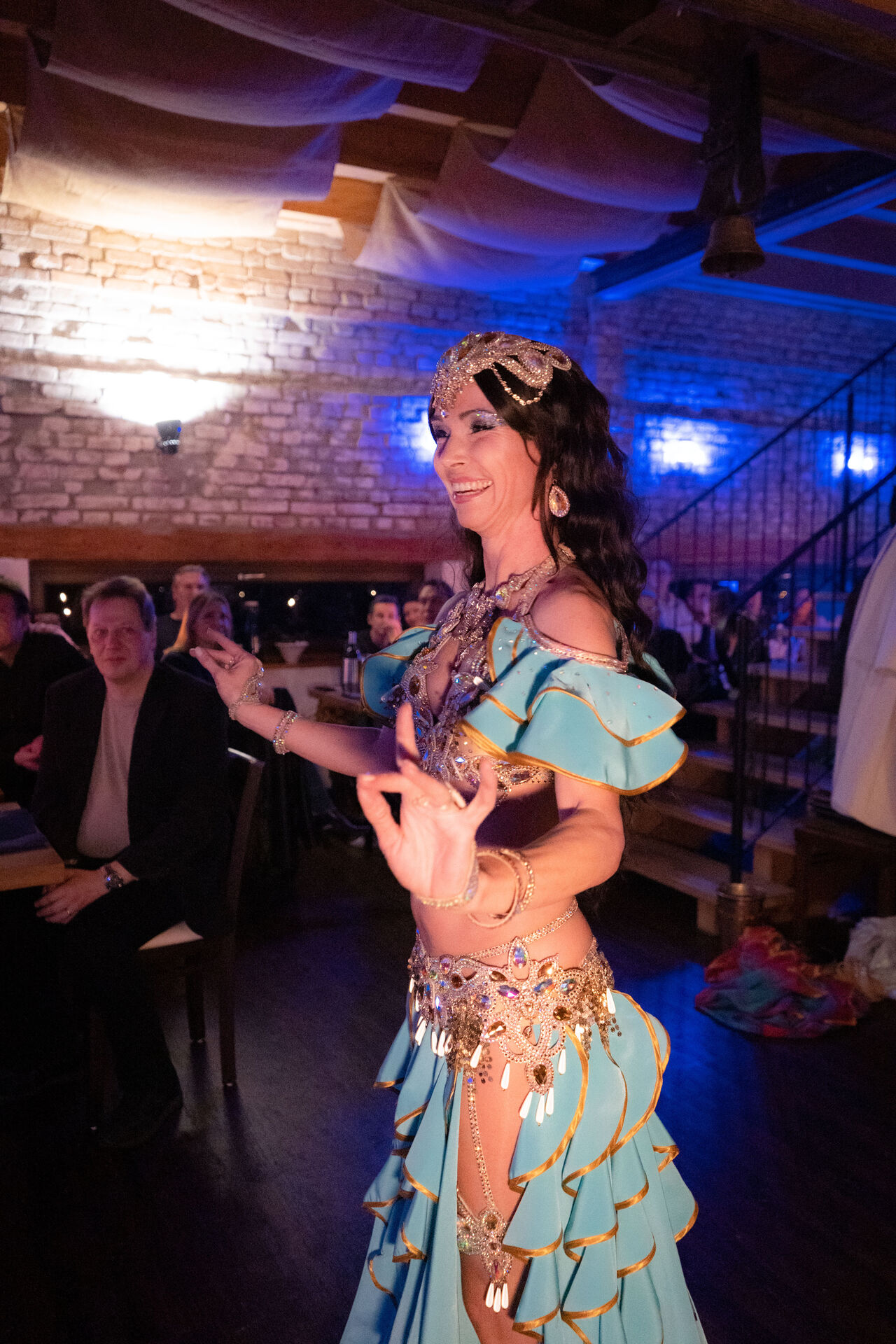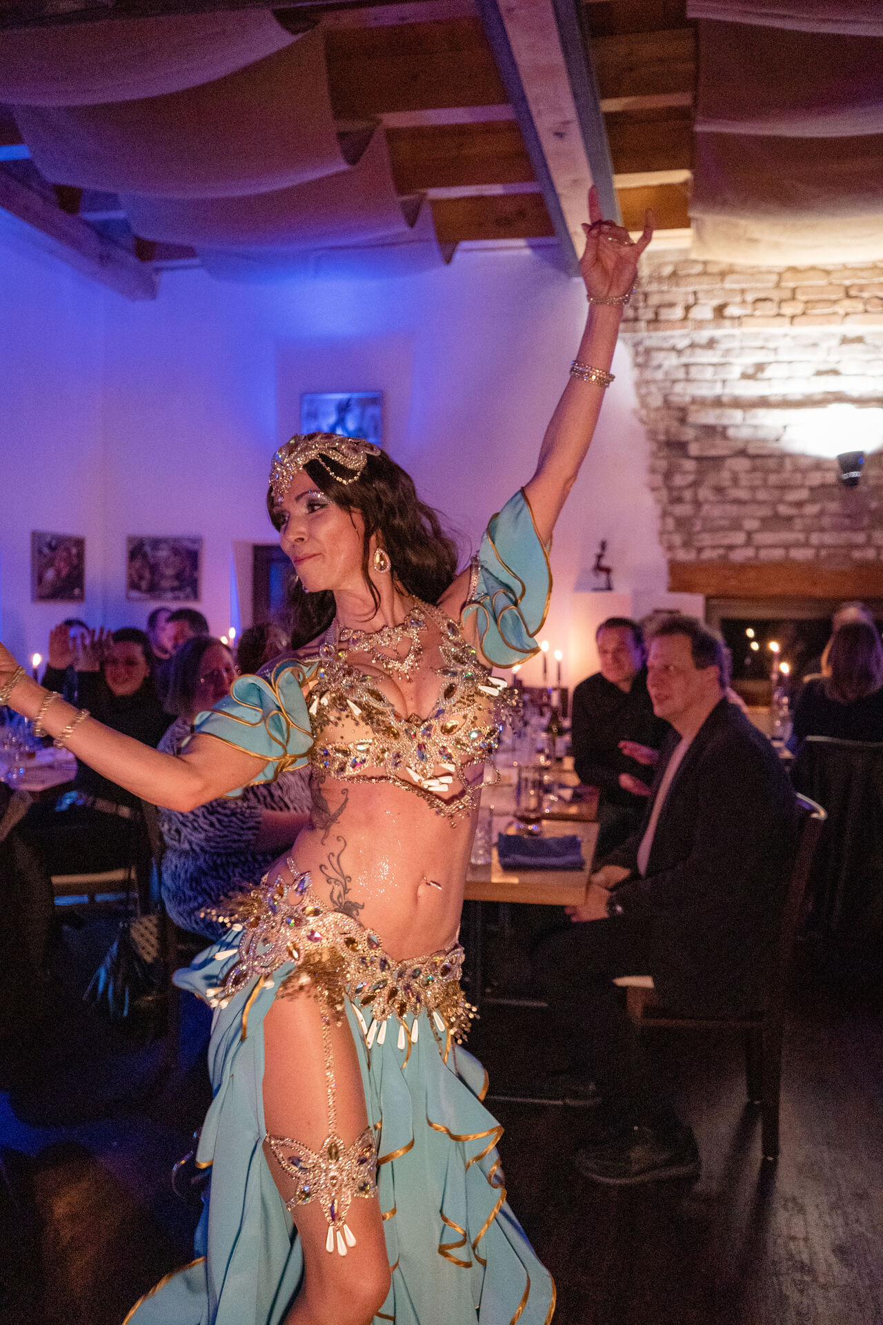 Komm mit mir in ein Land voll verborgener Magie!Unser Flaschengeist zaubert Ihnen die leckersten Köstlichkeiten der orientalischen Welt, während die atemberaubende Performance unserer talentierten Bauchtänzerin Sie in eine Welt voller Eleganz und Leidenschaft entführt.